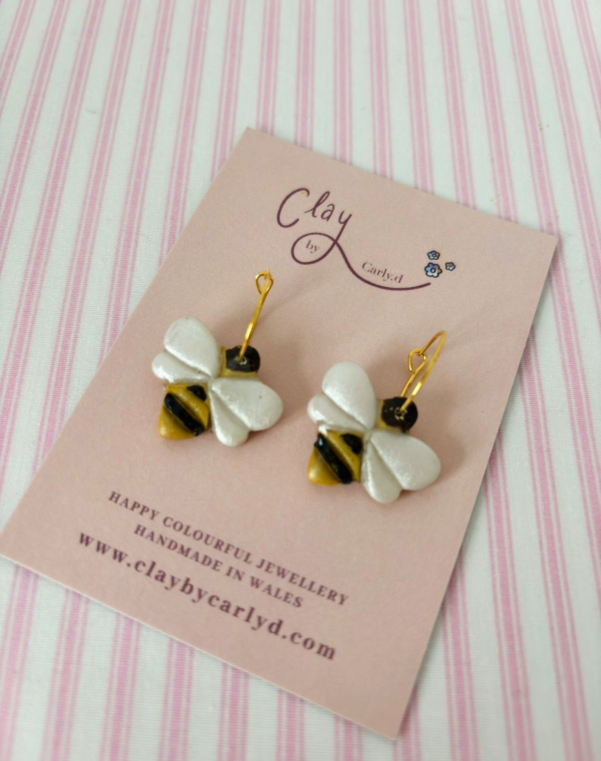 Clay and Resin Bees on 18k gold plated 15mm hoops