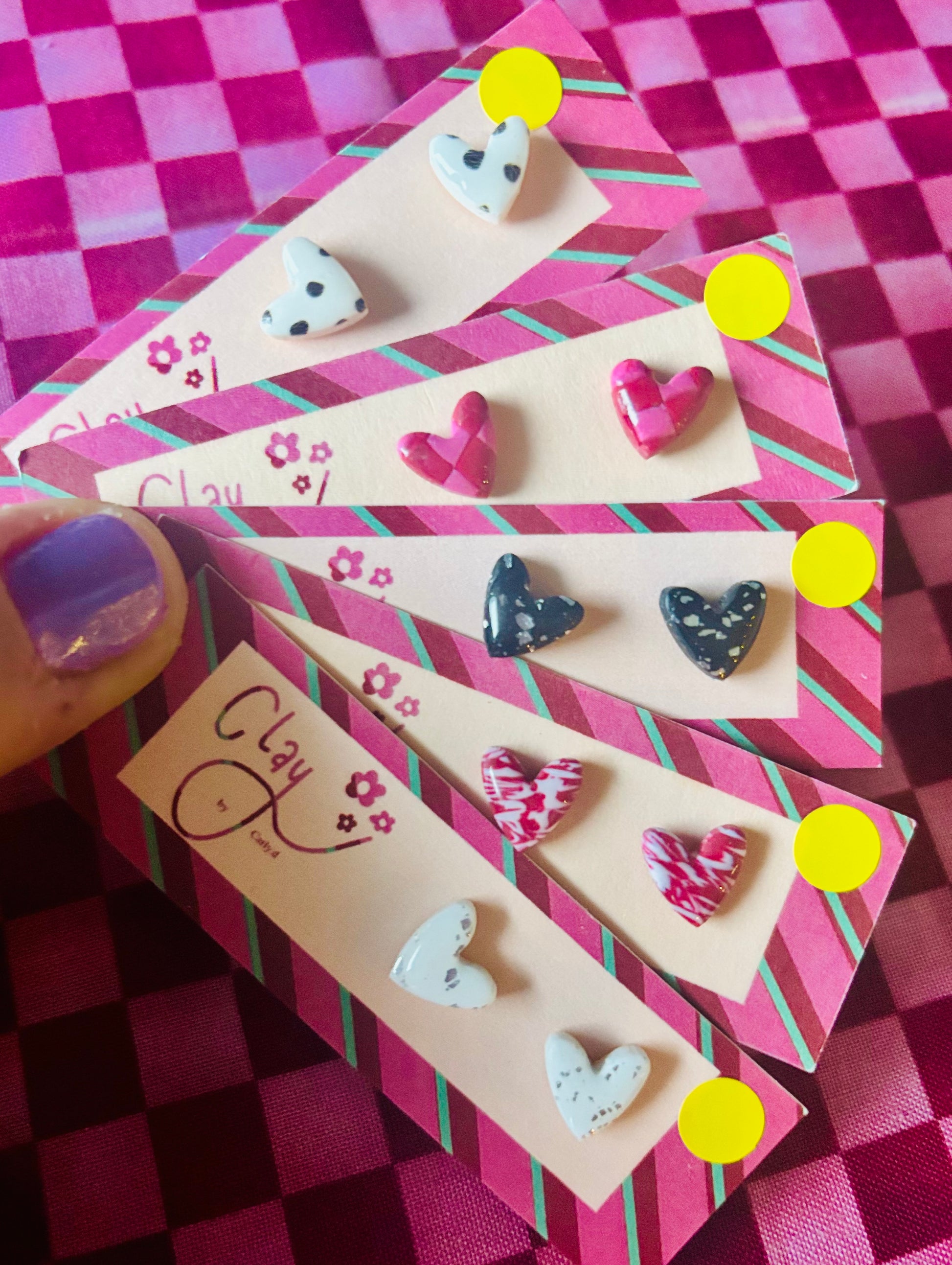 Super Mini Clay and Resin Heart Studs on Surgical Steel posts and backs