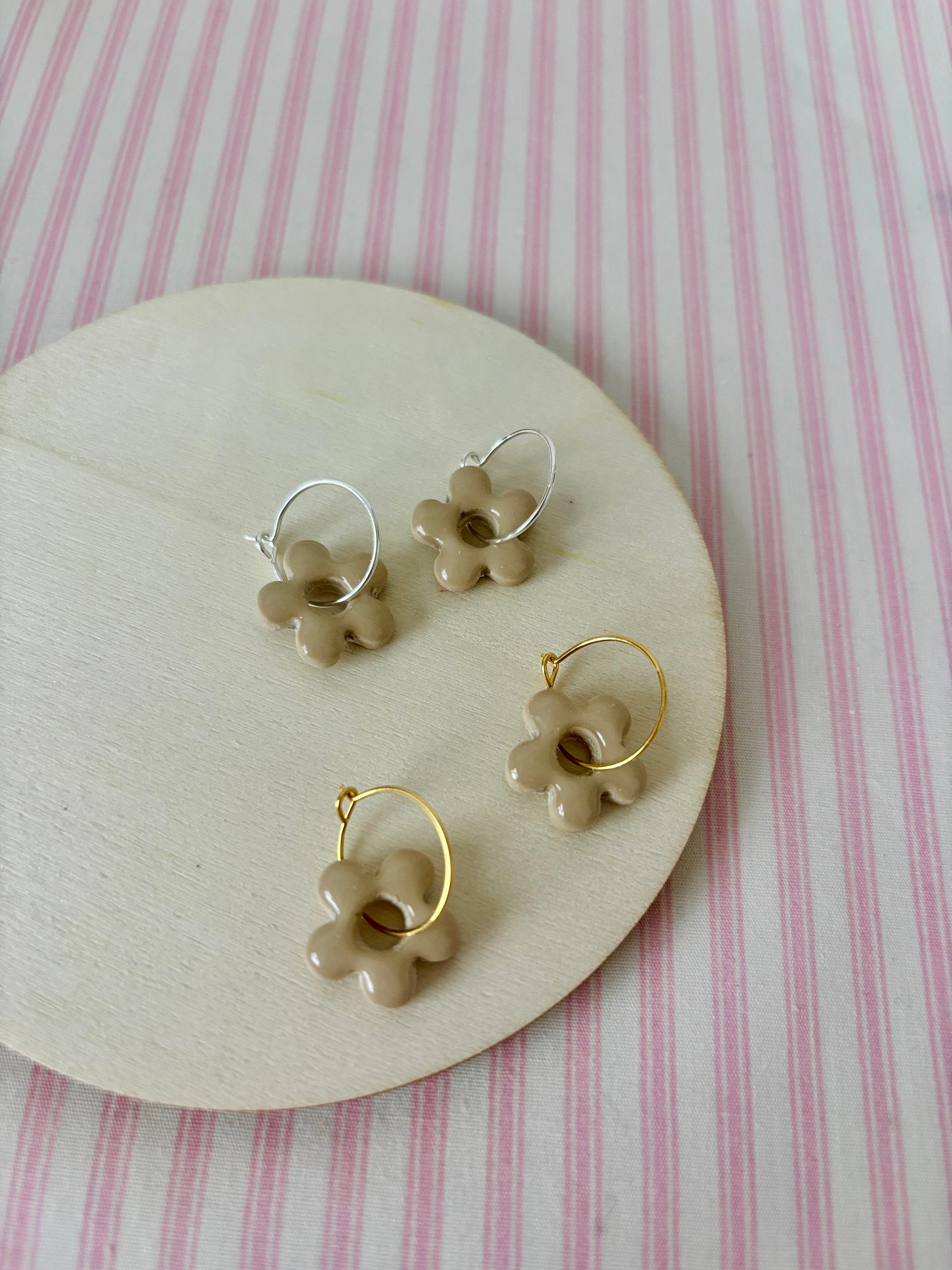 Earthy tone Clay & Resin Daisies on choice of 18k Gold or Silver plated 15mm hoops