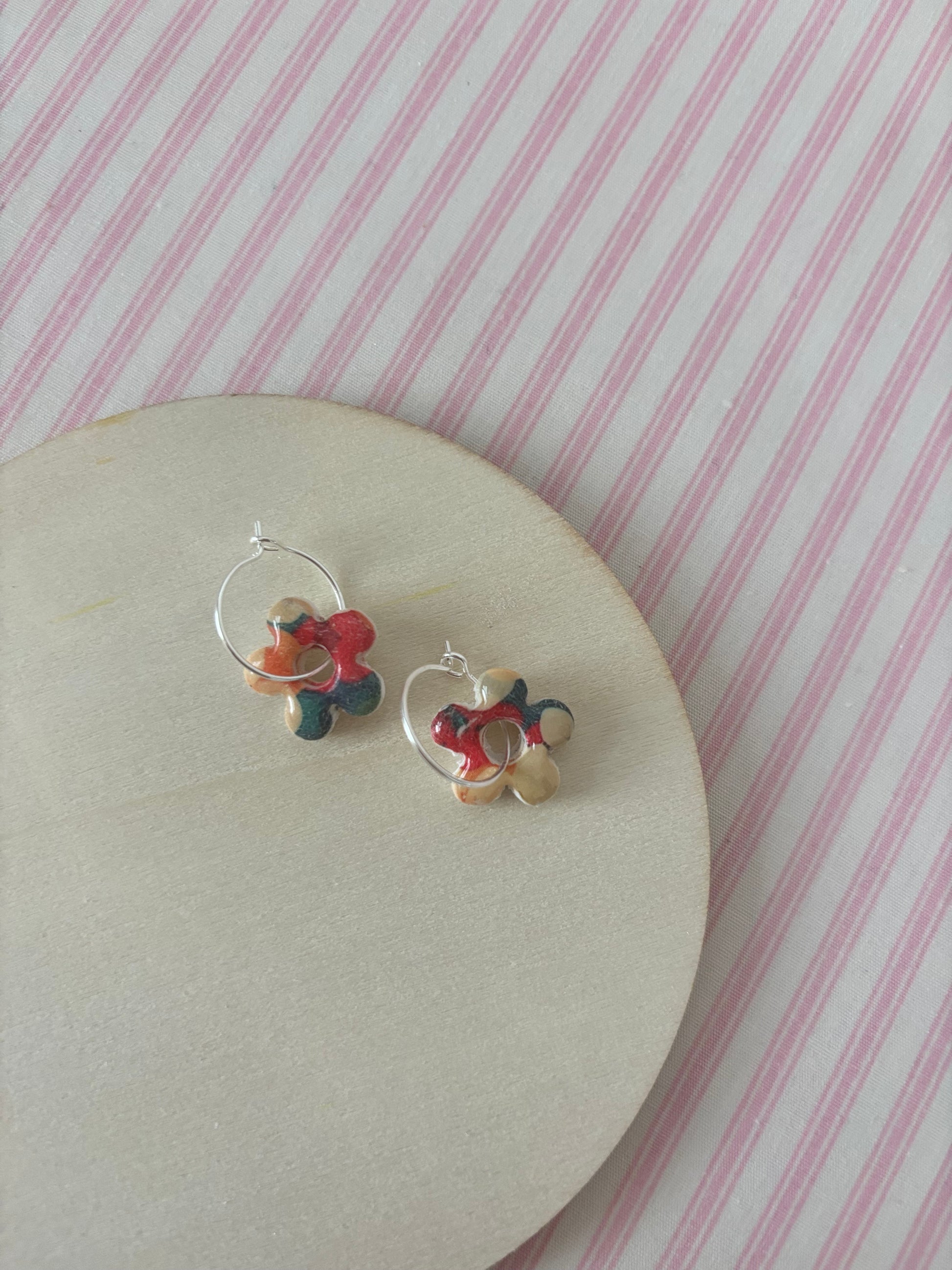 Clay & Resin Printed Pumpkins and Daisies on choice of 18k Silver or Gold Plated 15mm Hoops