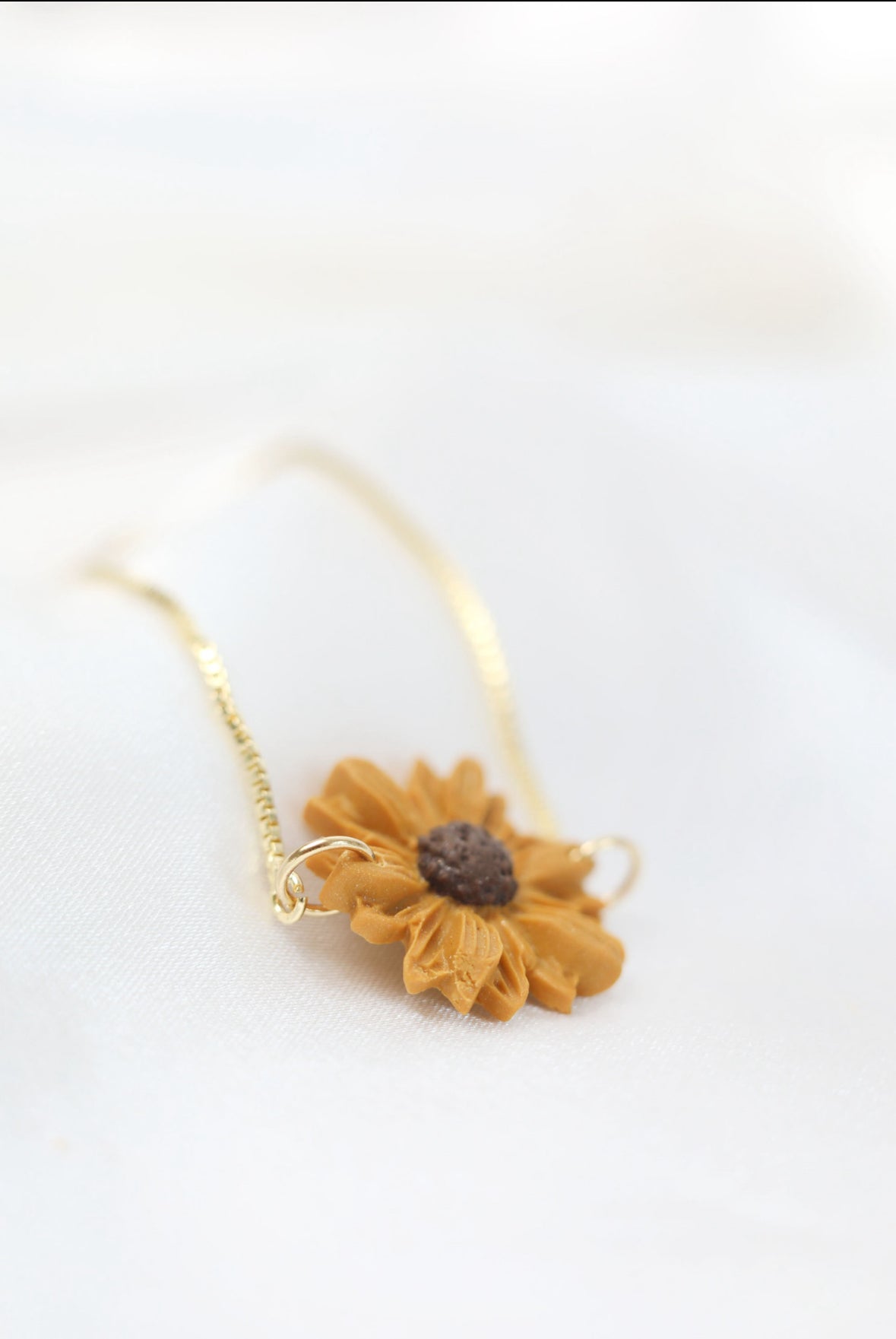 Hand sculpted Sunflower on adjustable fine bracelet.